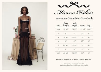 Designed in New York City and proudly made in Delhi, India. Illusion tulle gown adorned with hand cut and sewn lace appliqués along neckline, hip and hem. Hem is reinforced with horsehair. Laces imported from France. Hook and eye closure. Comes with removable lining.